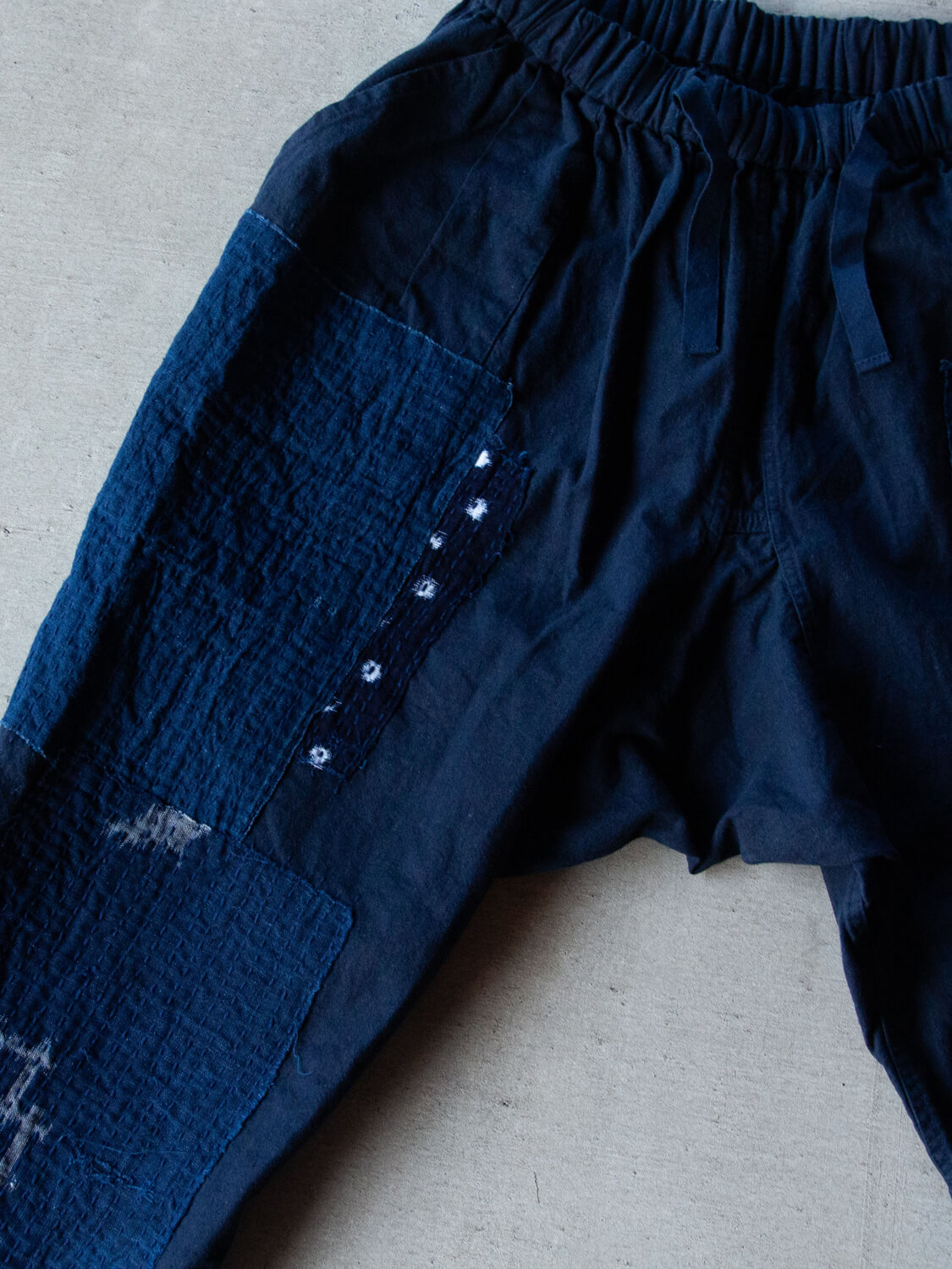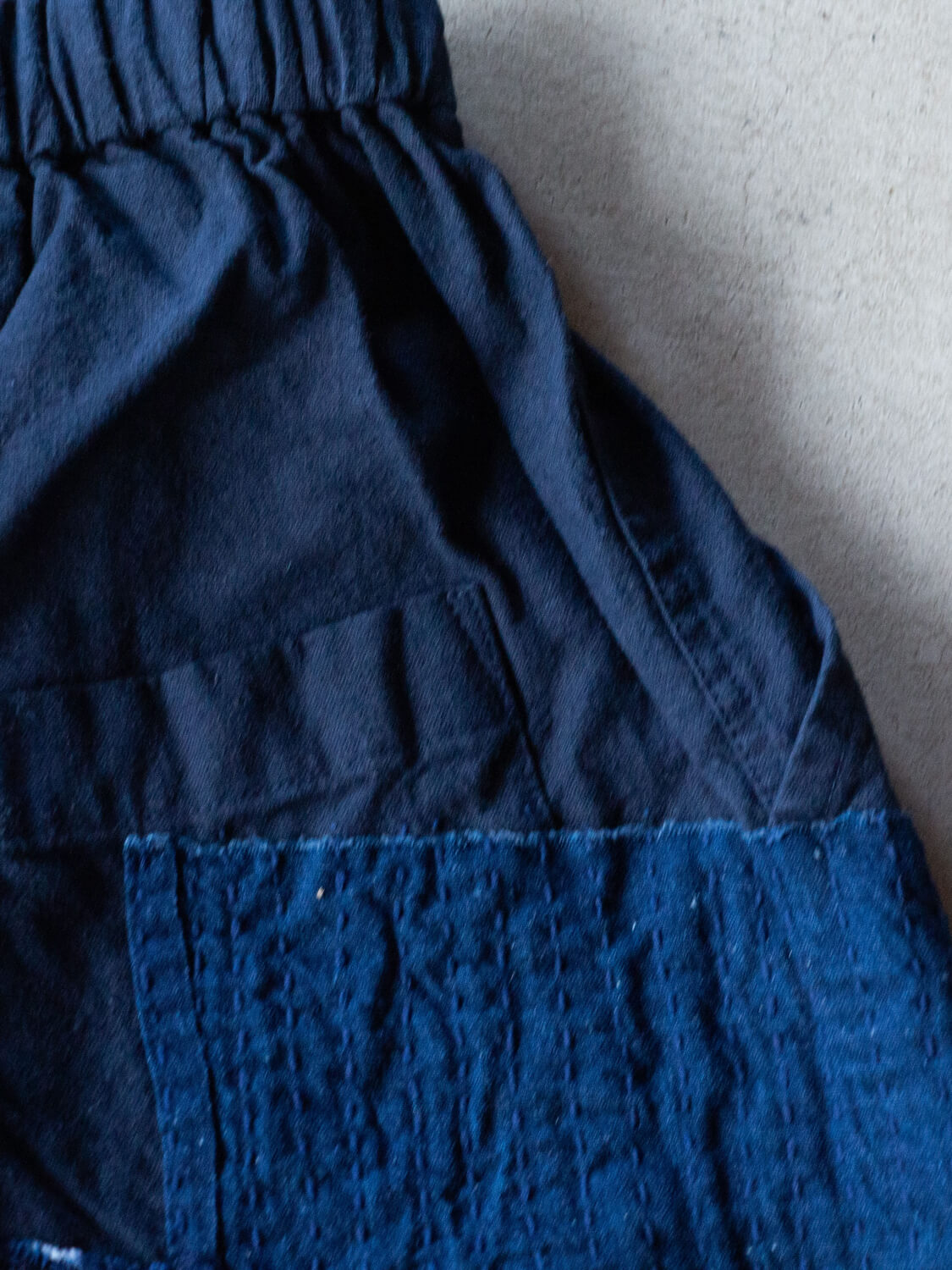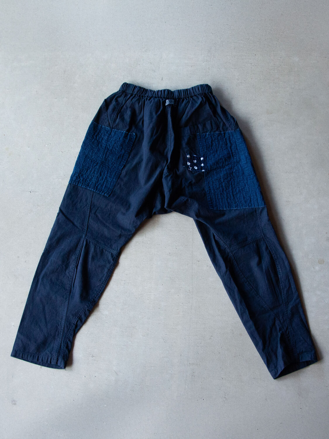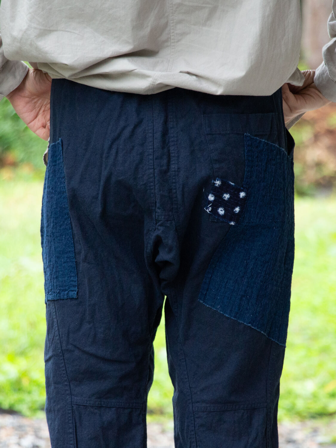 昨今ではあまり見ることのない猿袴のような形は、現代よりも動きの多い暮らしの中で、より快適に過ごすための工夫が詰め込まれています。猿袴の魅力は昔の暮らしだけではなく、今の暮らしにも寄り添い、より楽しく快適にしてくれるはず。そう思い、縁日の「SAPPAKAMA」を作りました。からだに馴染み、足の動きを軽やかに。