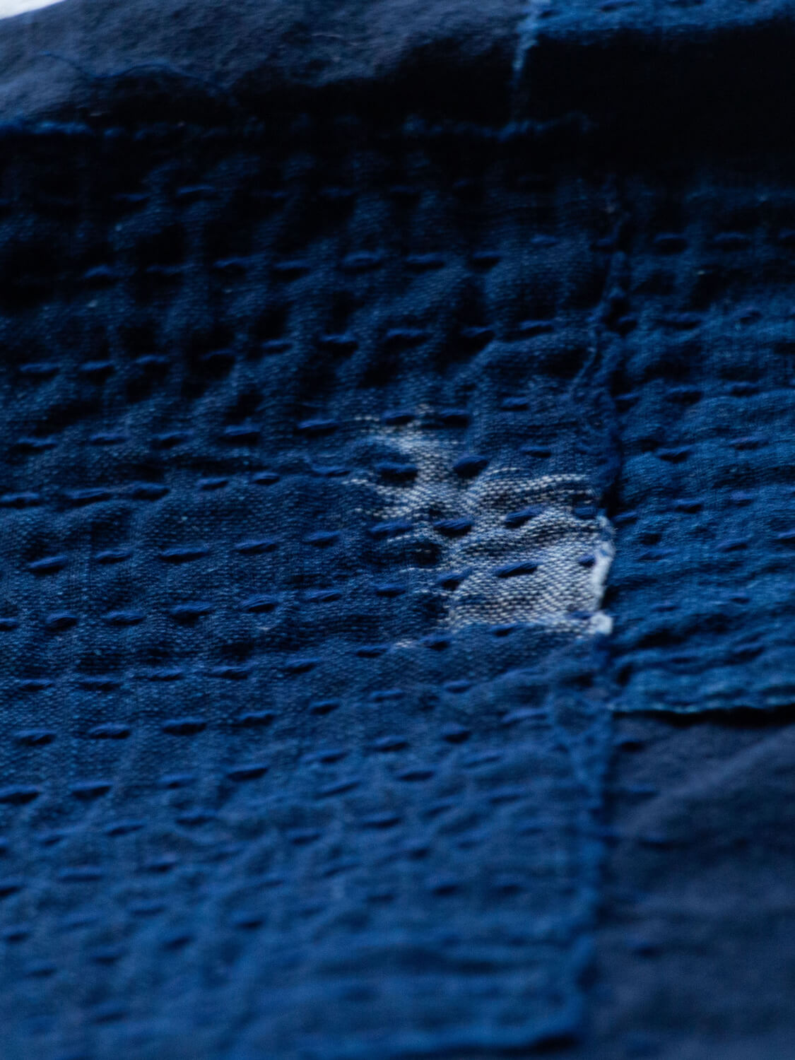 そこに新たな強度と、これから使い続けるための時間を与えるように一針一針手差しの刺子が重ねられています。