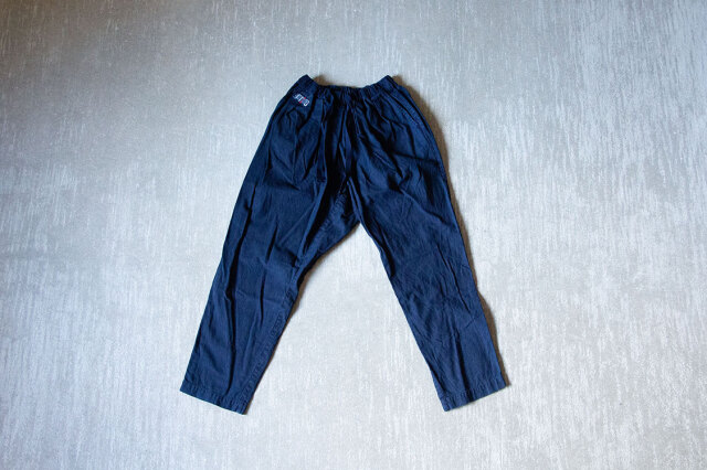 股下から裾まで一枚ものの生地でマチをとっているので、足を広げた時に縫い目のかかる負荷がなくなり丈夫な作りになるほか、生地の伸縮が大きくなるため足の可動域を広げることに繋がります。