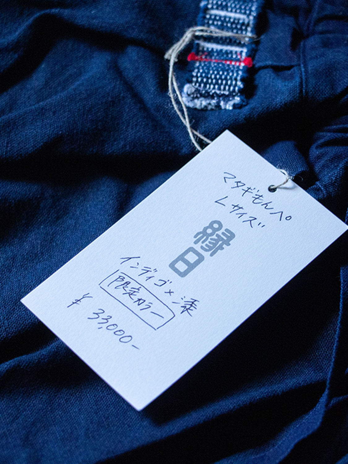 ↑こちらがスタッフが3年ほど着用している「インディゴ×漆」のSAPPAKAMAです。