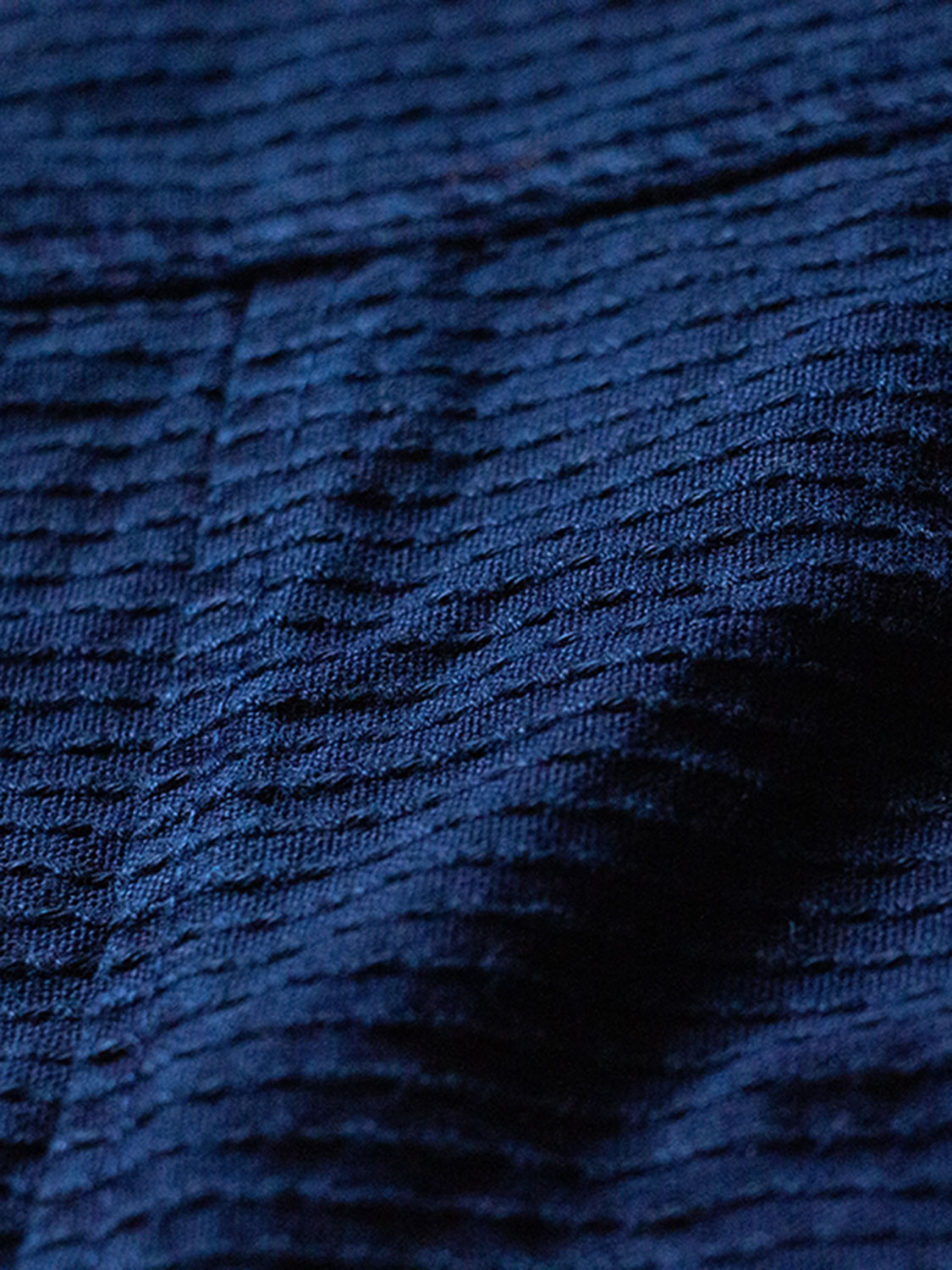 中厚手の生地に太めの黒糸が織り込まれた一本刺子生地は、丈夫でありながらも硬すぎない風合い。