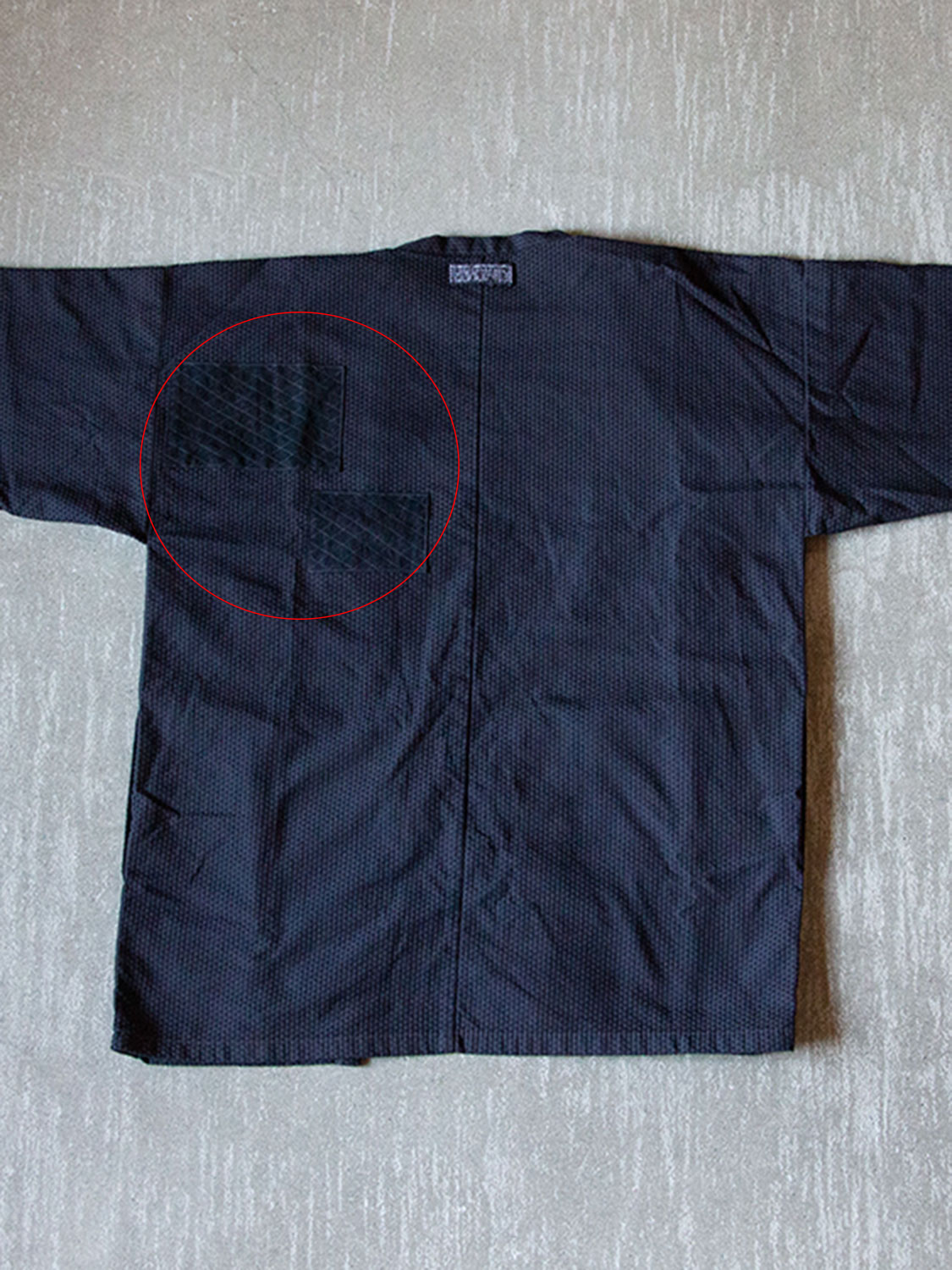 袖は動きやすさを重視し「もじり袖」仕様に。もじり袖は、むかしから職人さんが着る半纏などにも使われている伝統的な形です。職人の腕の動きを妨げない昔からの工夫が詰め込まれています。