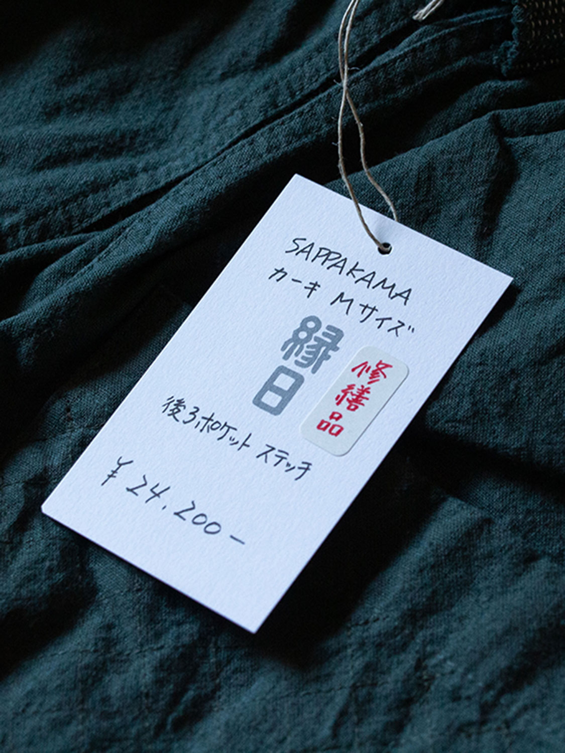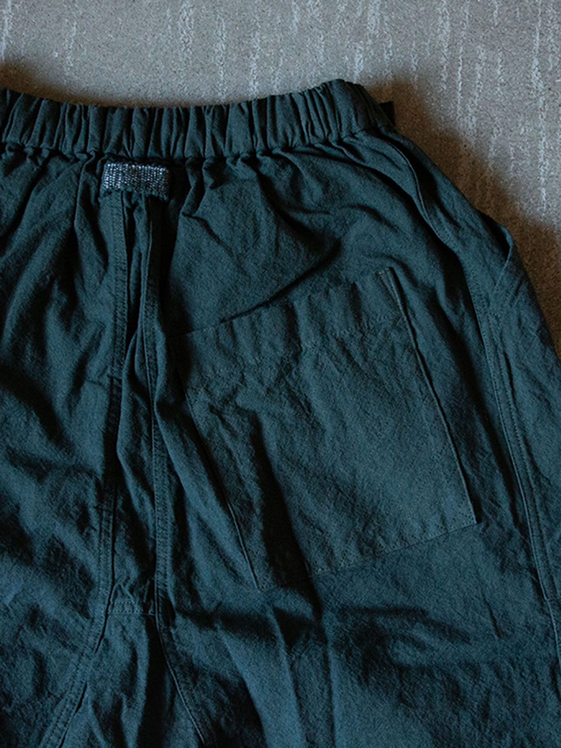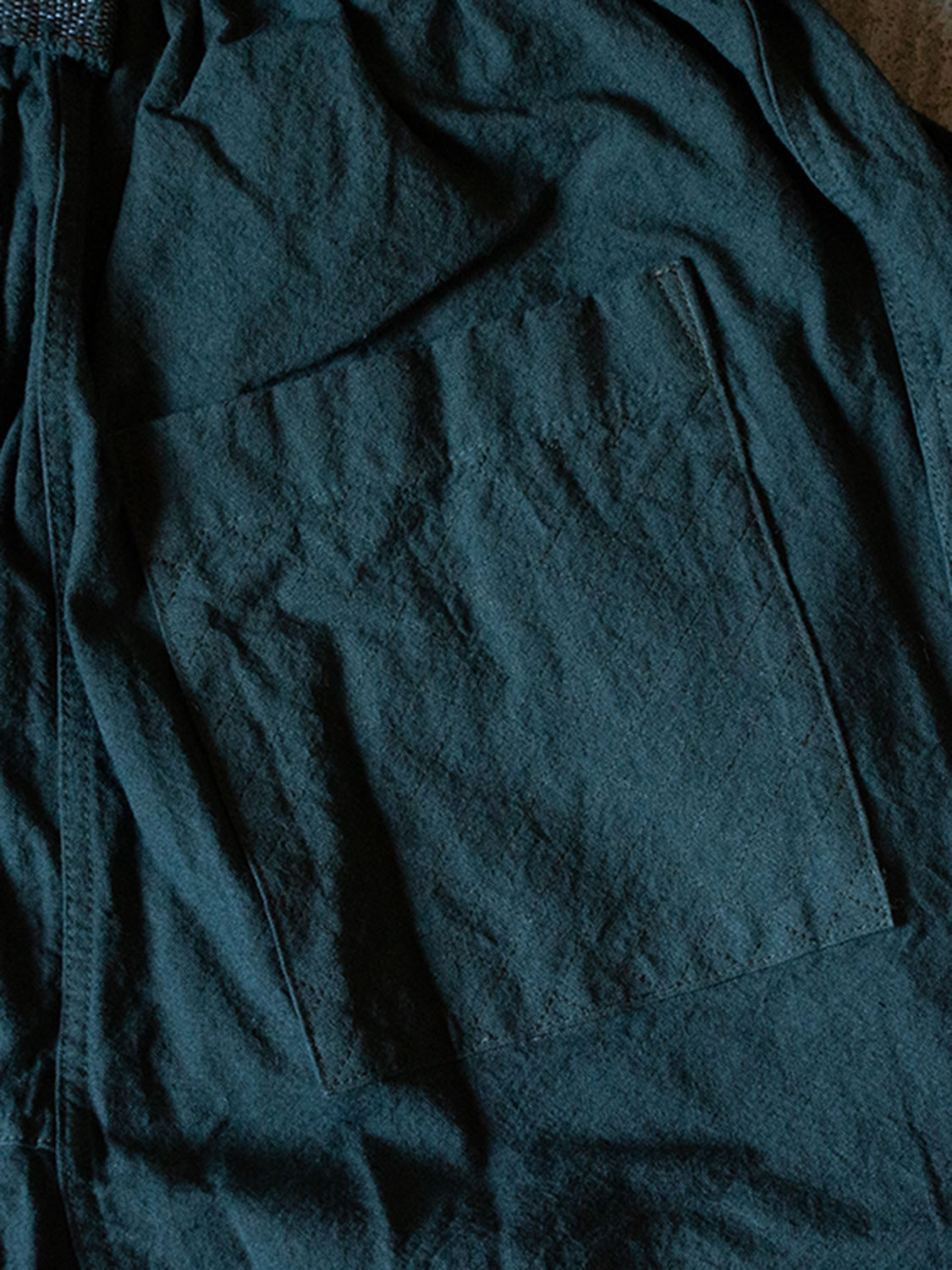 昨今ではあまり見ることのない猿袴のような形は、現代よりも動きの多い暮らしの中で、より快適に過ごすための工夫が詰め込まれています。猿袴の魅力は昔の暮らしだけではなく、今の暮らしにも寄り添い、より楽しく快適にしてくれるはず。そう思い、縁日の「SAPPAKAMA」を作りました。からだに馴染み、足の動きを軽やかに。