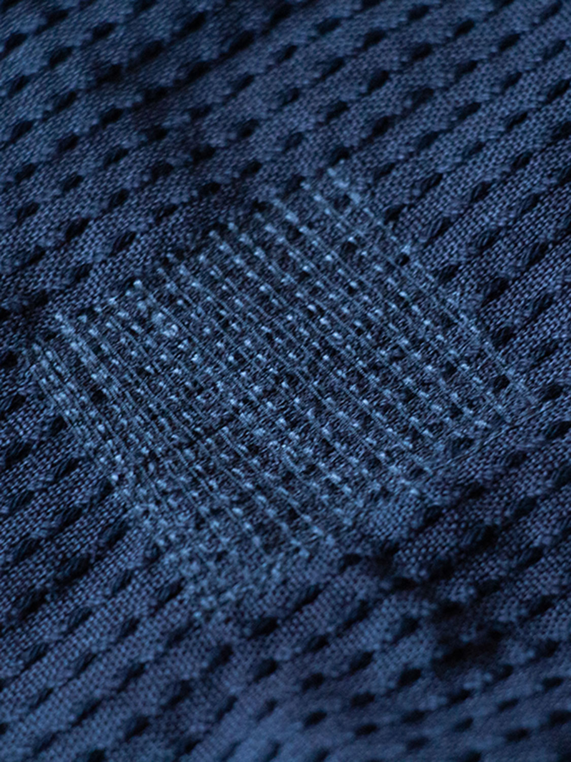 中厚手の生地に太めの黒糸が織り込まれた一本刺子生地は、丈夫でありながらも硬すぎない風合い。