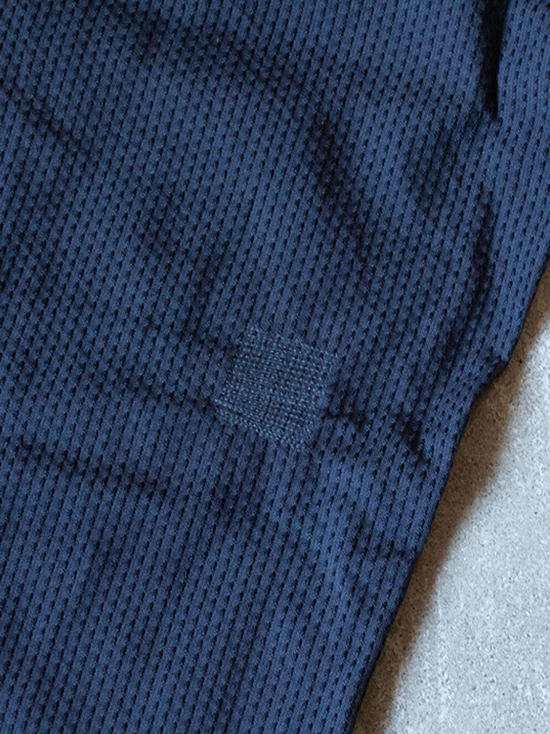 山仕事やDIYなどの作業シーンでも使えるように丈夫な一本刺子生地を選びました。刺子生地は江戸時代から火消し(消防)半纏などに使われるほど、丈夫で力強い生地です。