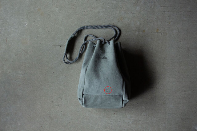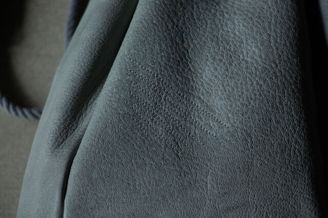 持ち手は、鹿革に手縫いの飾り縫いを施し、その凹凸が滑り止めになり、快適に持ち歩くことができます。紐は綿麻素材を使用し、長さ調節が可能です。