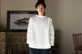 オーバーサイズのプルオーバーで、身体と生地の空間を多くとることで着ていないかのような解放感があります。スプリットラグランスリーブによって程よい運動量が確保されていて、洗濯を繰り返しても綺麗に立つ衿元がTシャツよりもきちんとした印象を与えています。