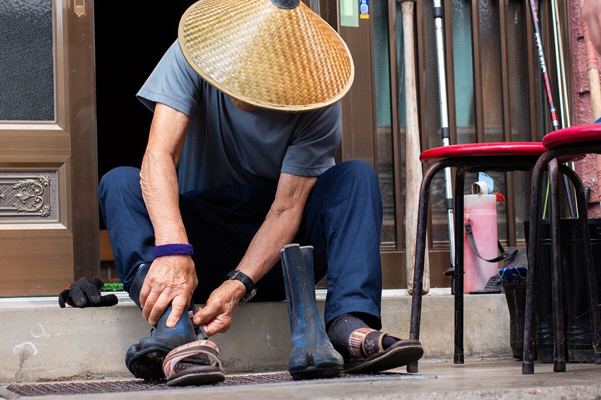 また脚絆や長靴などを履く時にも、スッキリ履くことができます。