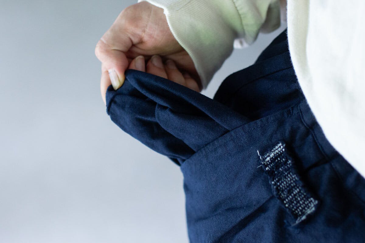 綿麻生地は、麻が混紡されているため、サラッとした肌触りで夏場でも快適に履くことができ、適度な通気性もあります。