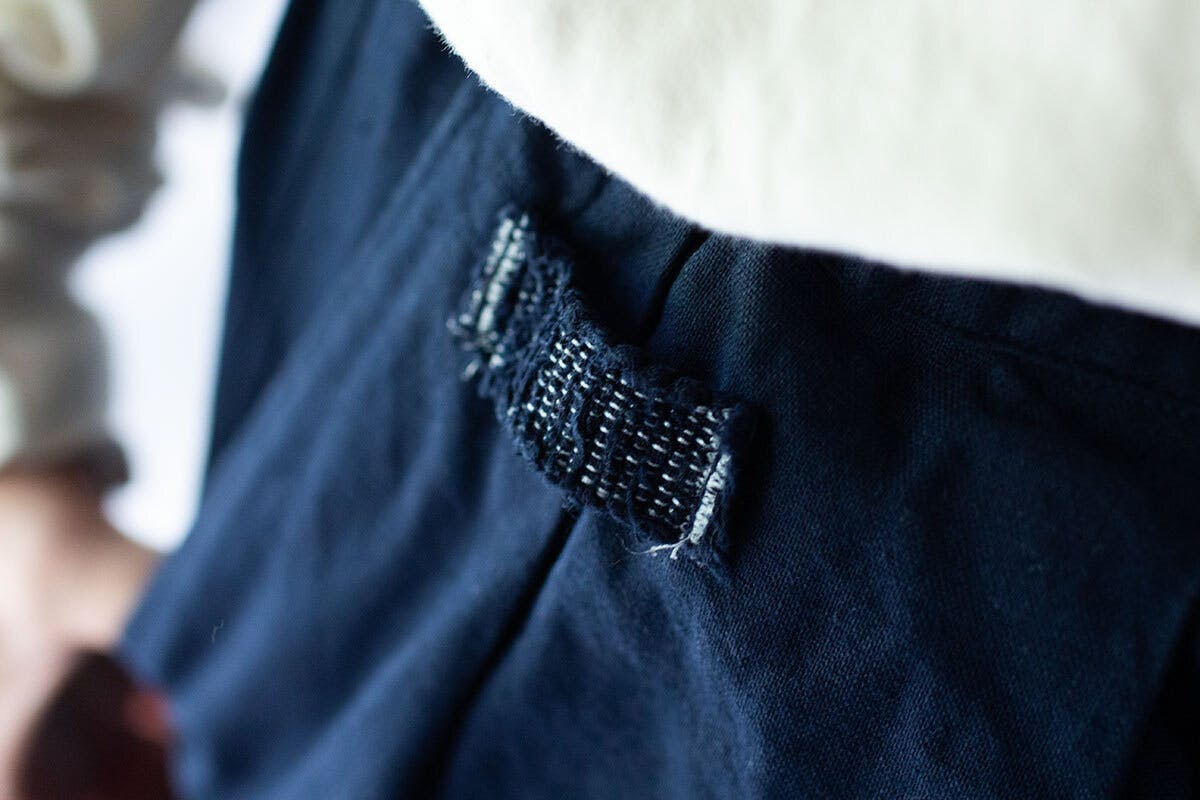 マタギもんぺは一見シンプルな形をしていますが、細部に目を凝らして見てみると、過酷な狩猟や山仕事の現場でも快適に動ける工夫が随所に詰め込まれたパンツでした。