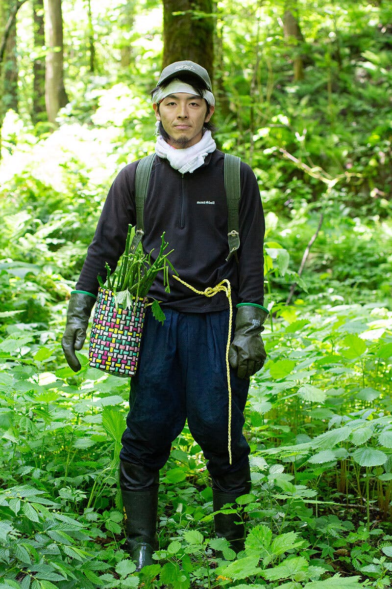 阿仁マタギでもある利彦さんは、旅館で提供する山菜、キノコ、魚など、自ら山で調達する。