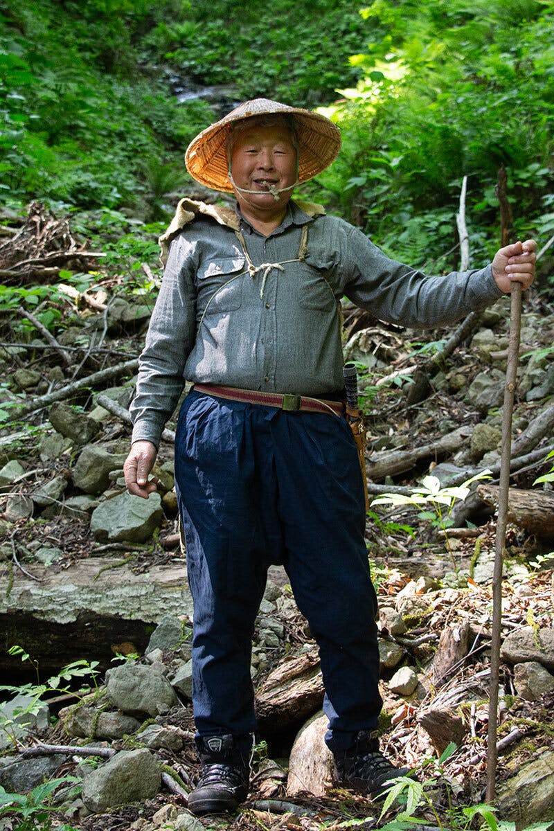 出来上がったマタギもんぺ、すごく良いよ。とても動きやすいから、草刈りや農作業にも良いし、山歩きも最高。俺の若い頃に、このマタギもんぺがあったら、こればっかり履いてどこまでも山に行っていただろうな。生地も肌につかないし、風も通すから汗をかかないくて良い。 熊猟では汗をかくと、身体の冷えにも繋がるし疲れの原因にもなるから大変だけど、このマタギもんぺなら問題ない。 普段はいても恥ずかしくない形だから、これは良いもんだね。