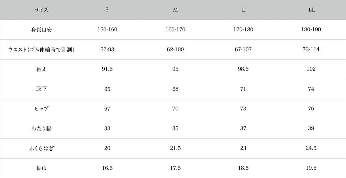 生地にゆとりがないと足を大きく開いたり、しゃがんだ時にお尻に生地が引っ掛かり可動域を邪魔してしまいます。