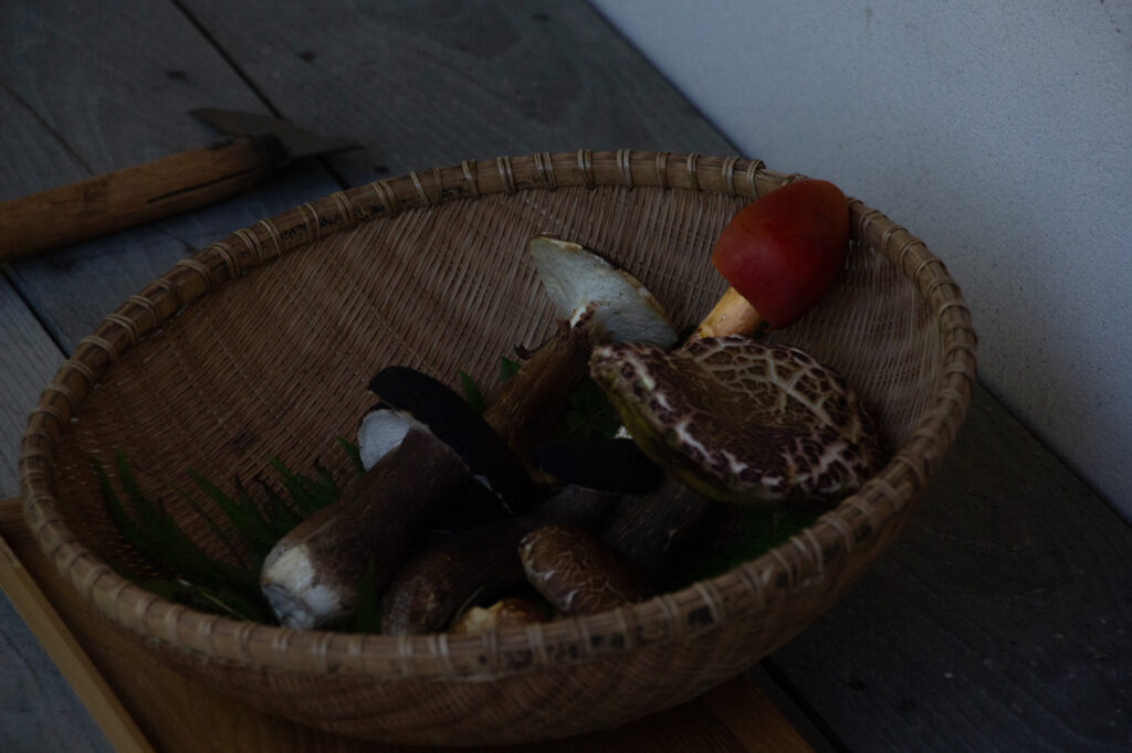 春には山菜、秋にはきのこが食卓に並ぶ。